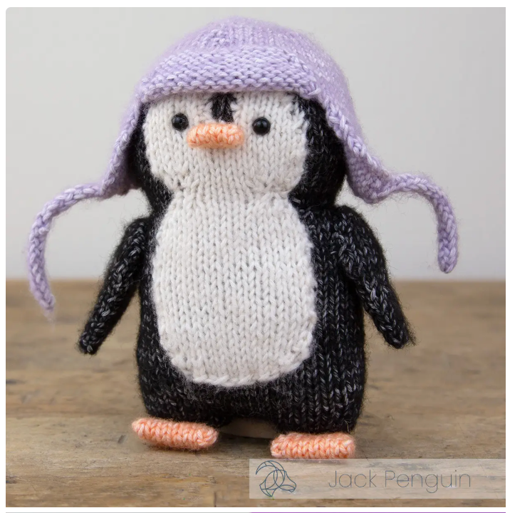 Jack the Penguin - Wrapped up in a cozy purple hat and full of charm, Jack Penguin is here to waddle his way into the winter season! This kit contains knitting instructions, high quality blended yarn and everything you need to get started (excluding knitting needles). Jack is approximately 17 cm high and is made with 2,5mm knitting needles.