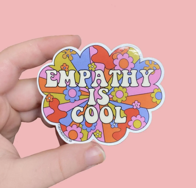 High gloss vinyl waterproof sticker featuring some groovy flowers and colors all to remind you - empathy is cool! Measures 2.4x3 inches. Materials and Care: ♥ fully waterproof ♥ Feature UV screening to protect against weather and sunlight ♥ 2-4 year minimum outdoor life Perfect sticker for your laptop, water bottle, notebook, and even your car!