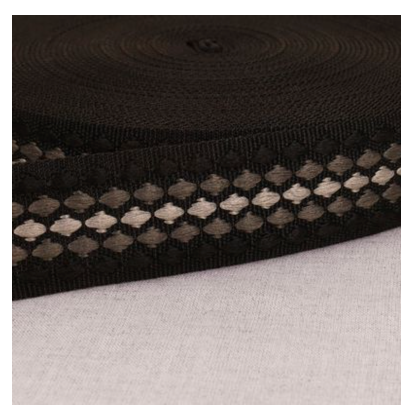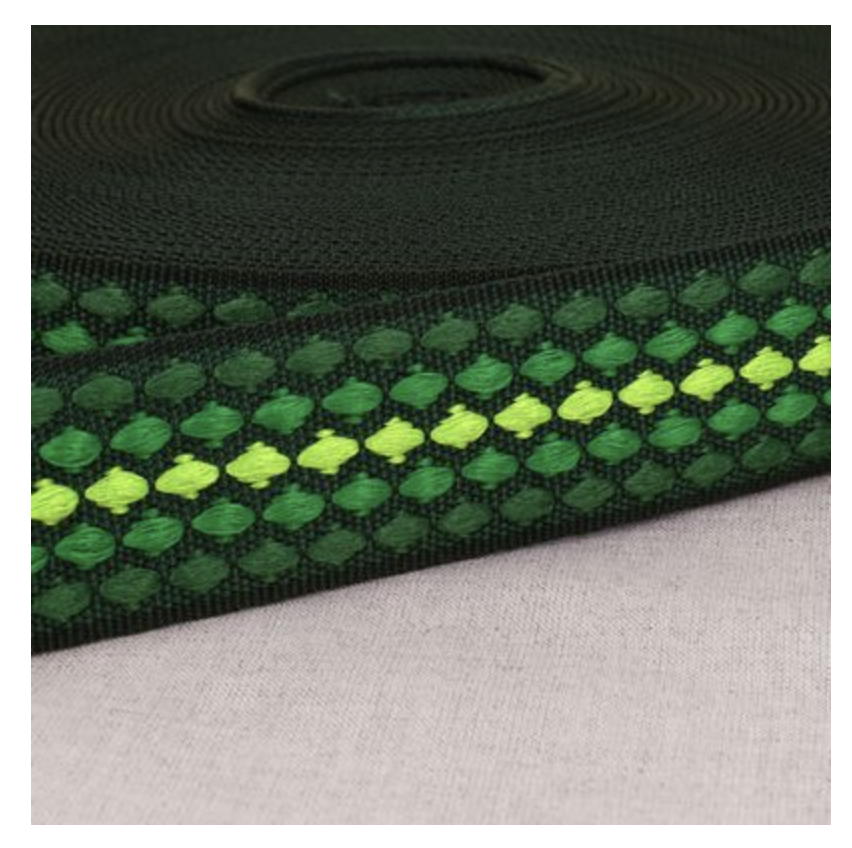 100% Polyester webbing with rhombus design. 1.5 in. 15.95 yard spool. Multcolor.